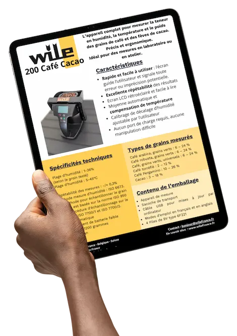Le Wile 200 Coffee est un outil polyvalent, précis et facile à utiliser qui permet aux professionnels du café et du cacao d’optimiser leurs processus, leur qualité et leurs résultats financiers.